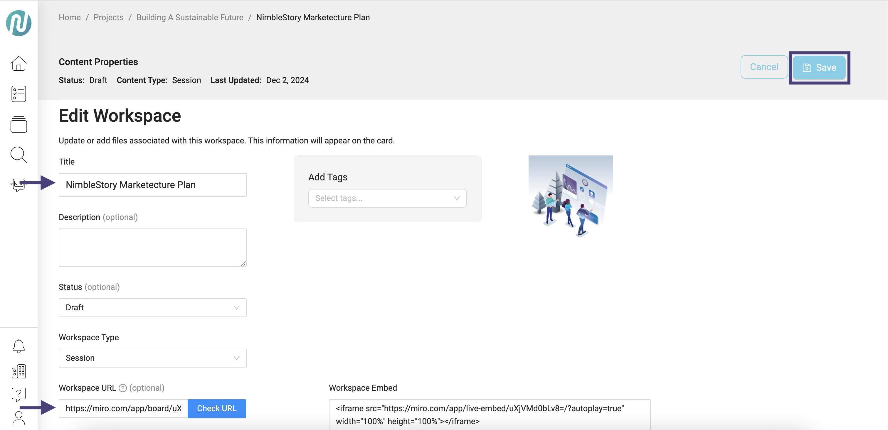 - Copy and paste a URL or Embed Code (in this case, a Miro link)