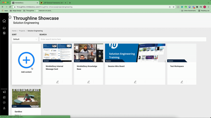 - Select the Add Content card from the Project Details page and click the available Workspace button. If you do not see the Add Content or Workspace button contact your administrator for access.