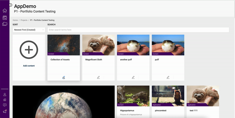 Each type of Portfolio content can be edited and the information and content associated with it updated. To access the Edit view, select the edit icon at the base of the asset card in a project. This will take you to a new screen that will allow you updated known information about the asset.