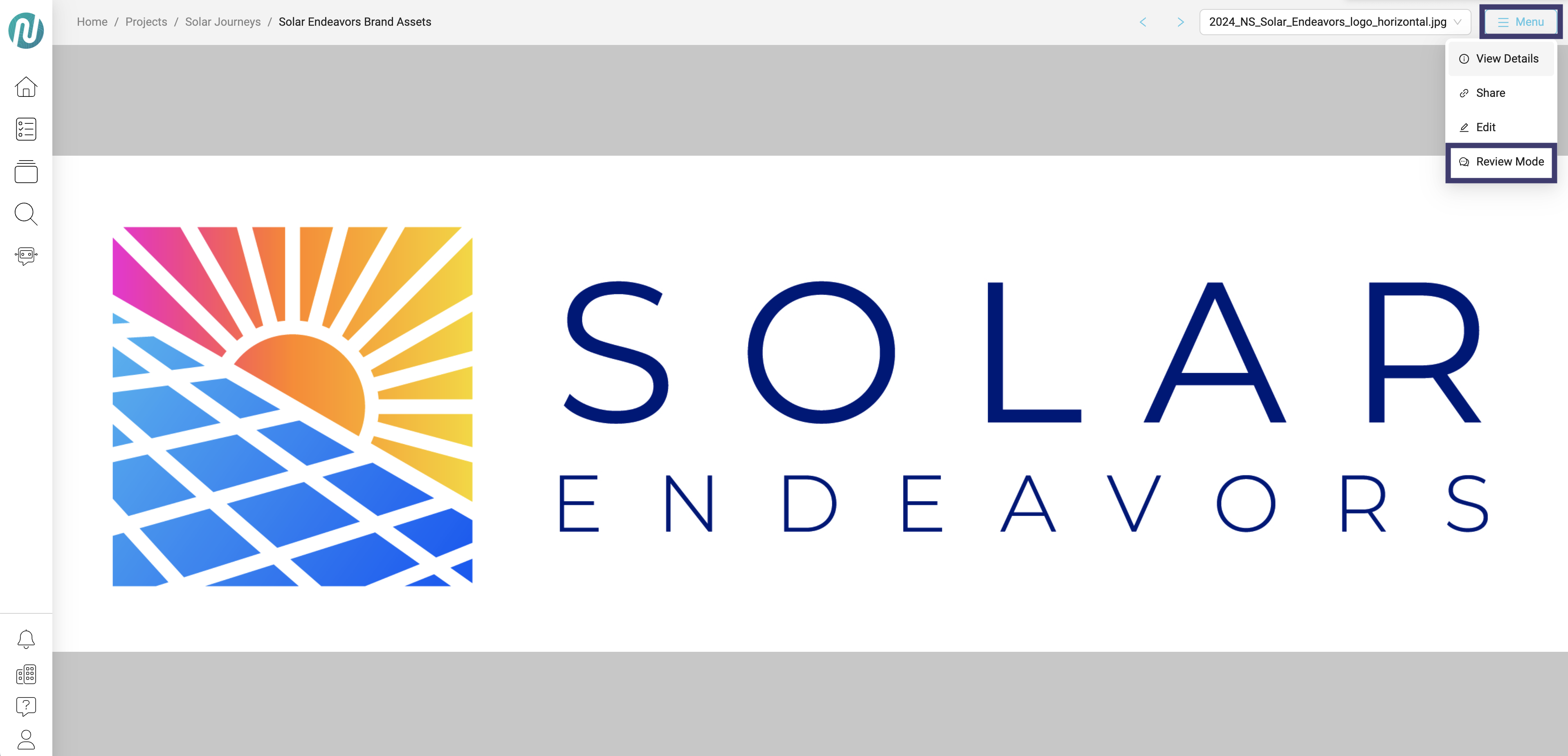 - Once in your asset, click on the Menu button and select Review Mode: