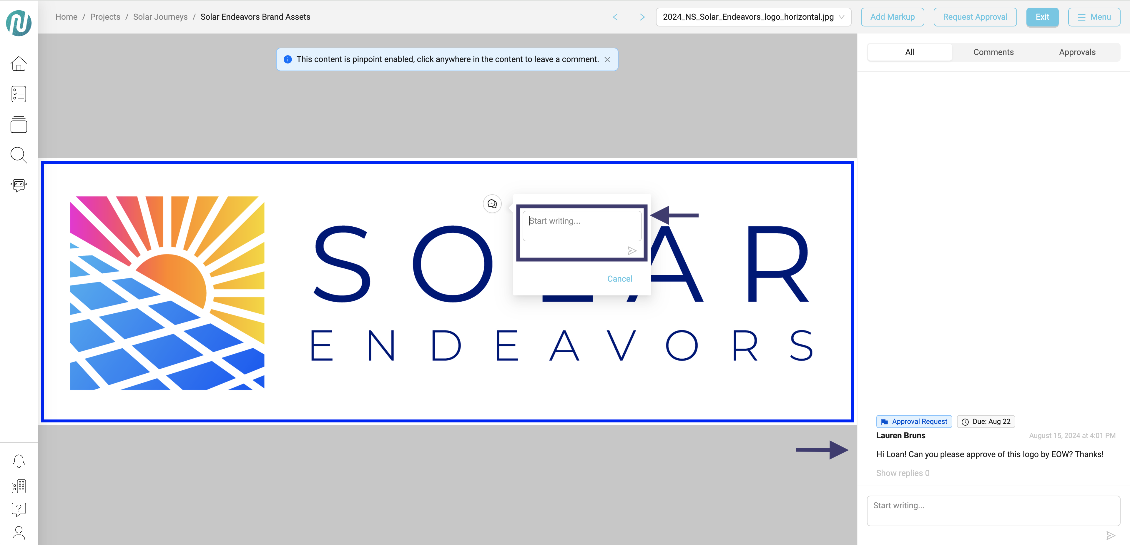 - This feature allows you to add specific commentary and highlight or point to certain elements on your asset.