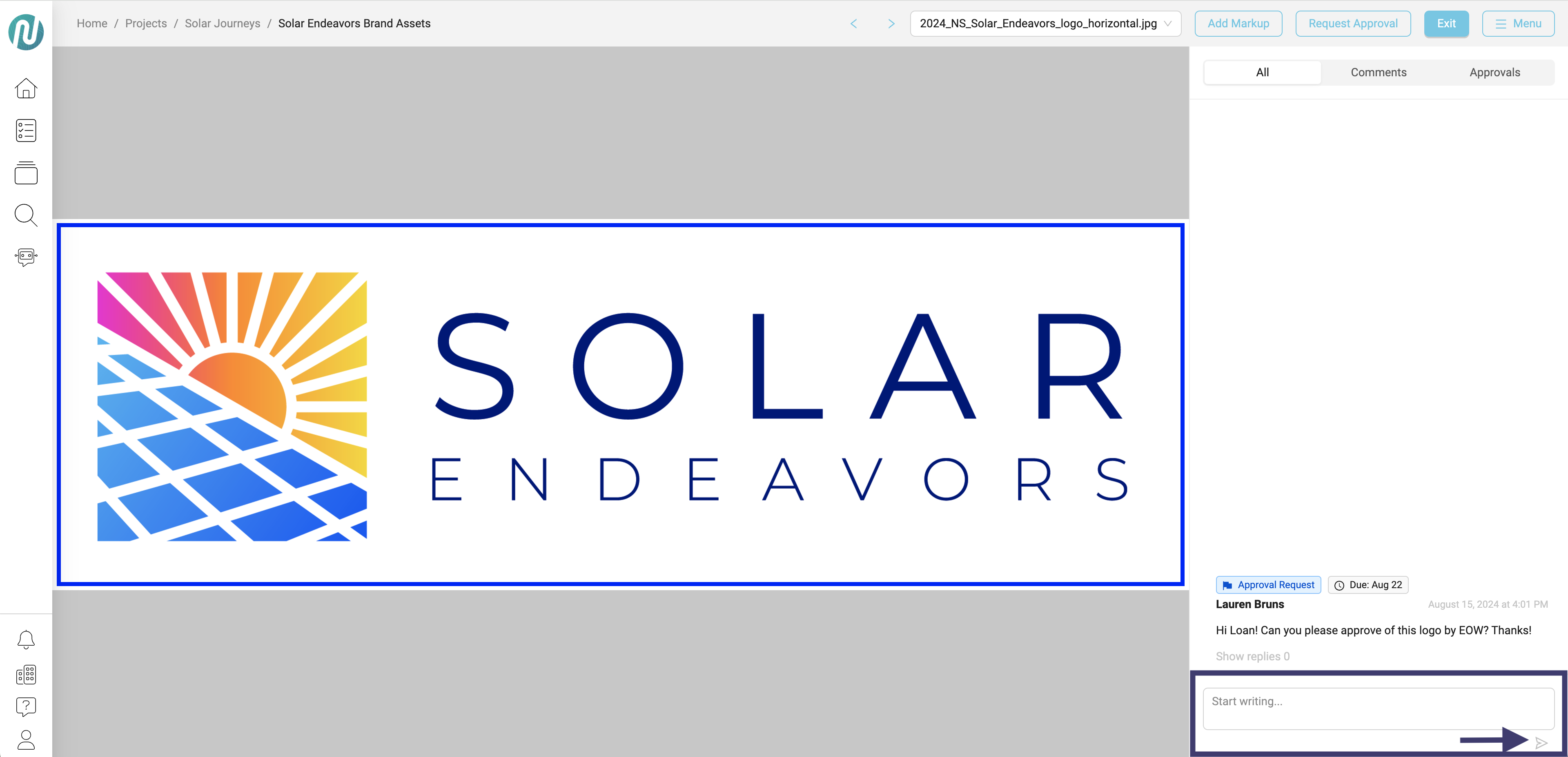 - Click on Request Approval to initiate an approval request: