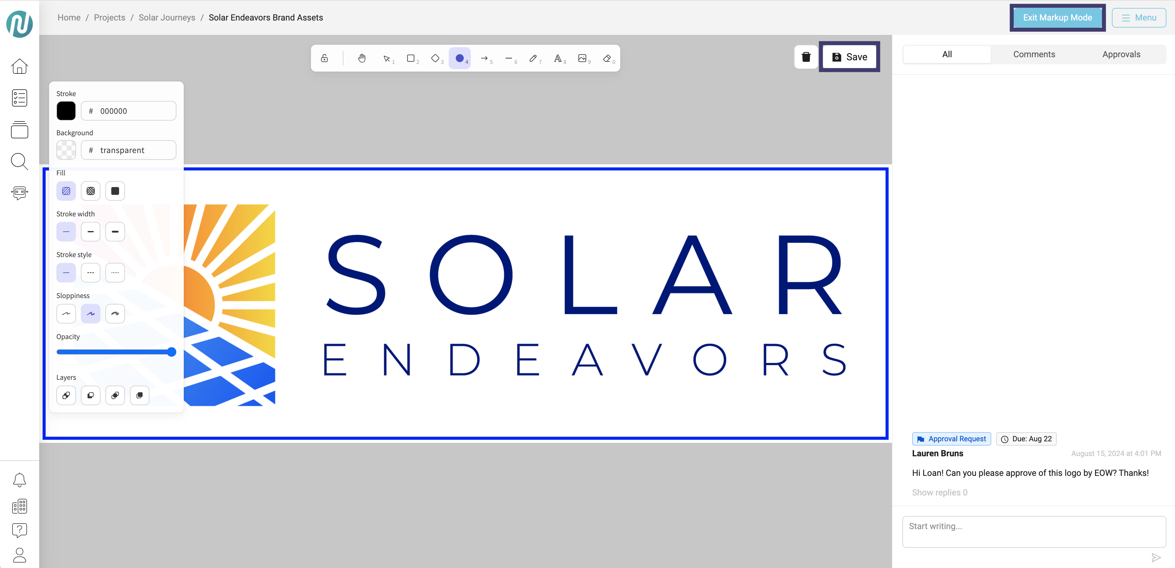 - When you have finished your markups, click on Save in the upper right corner, then click on the Exit Markup Mode button: