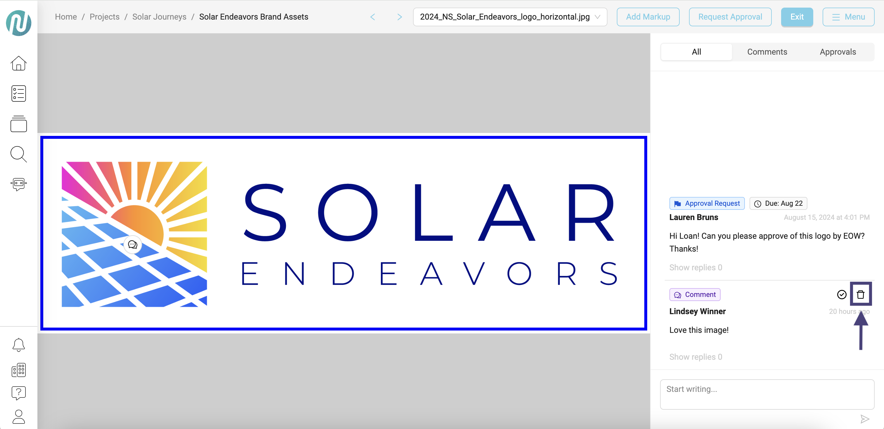 - To delete a comment, click on the trash can icon: