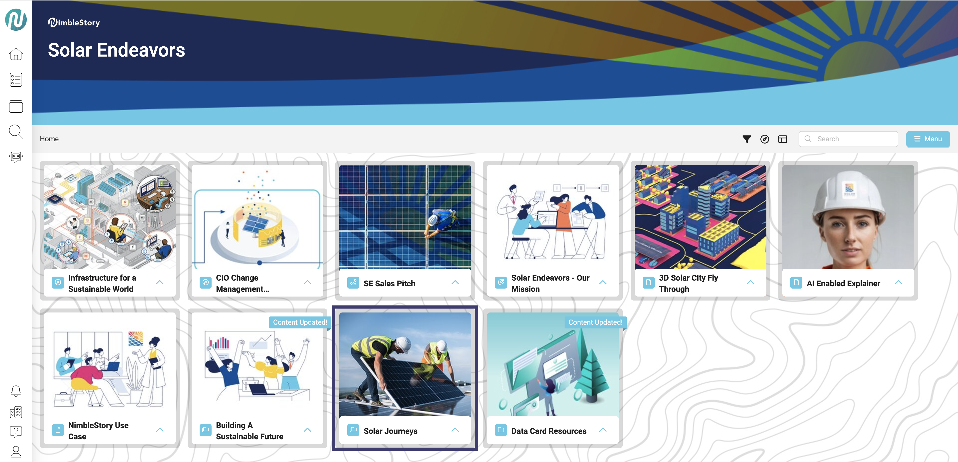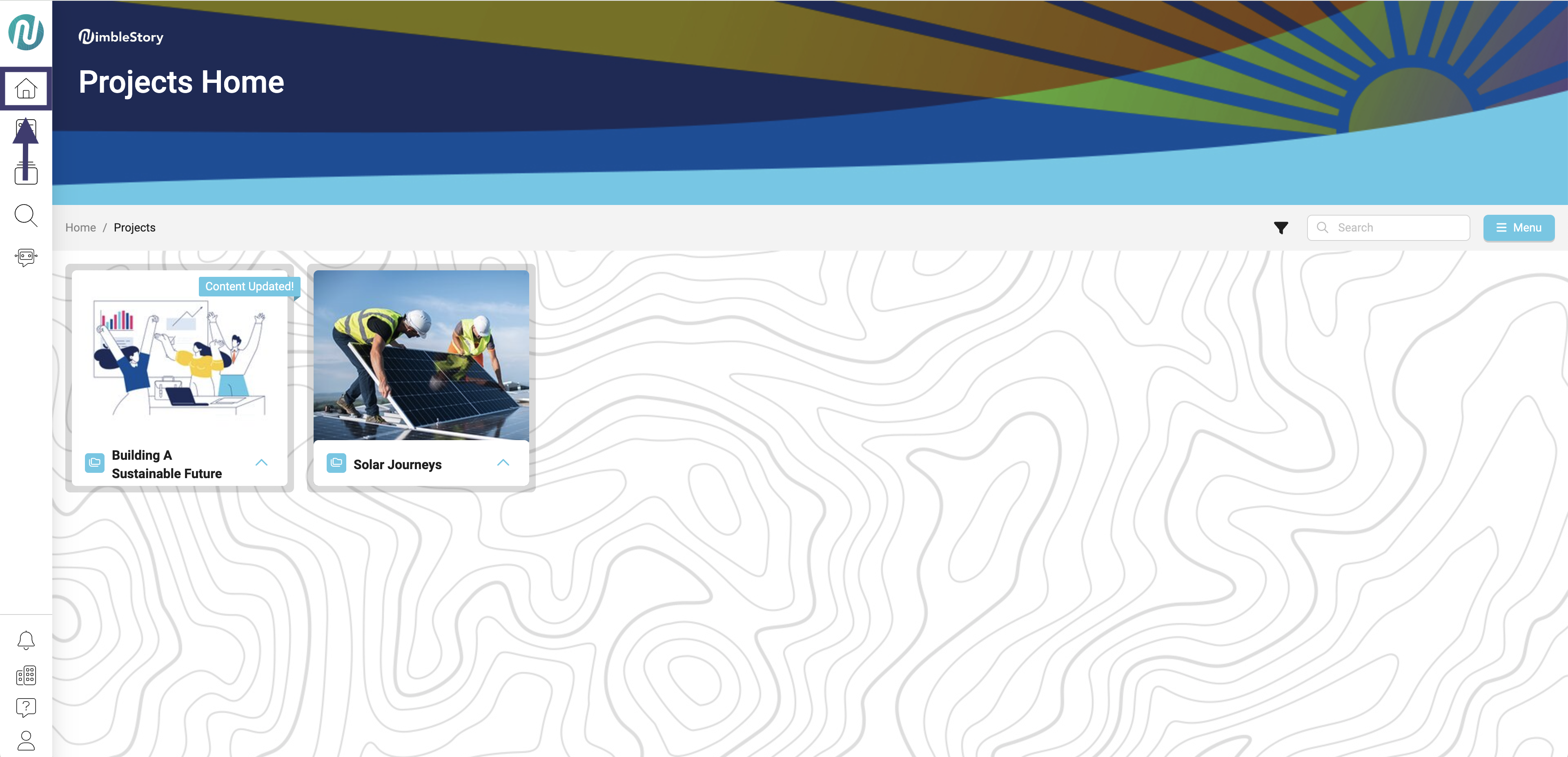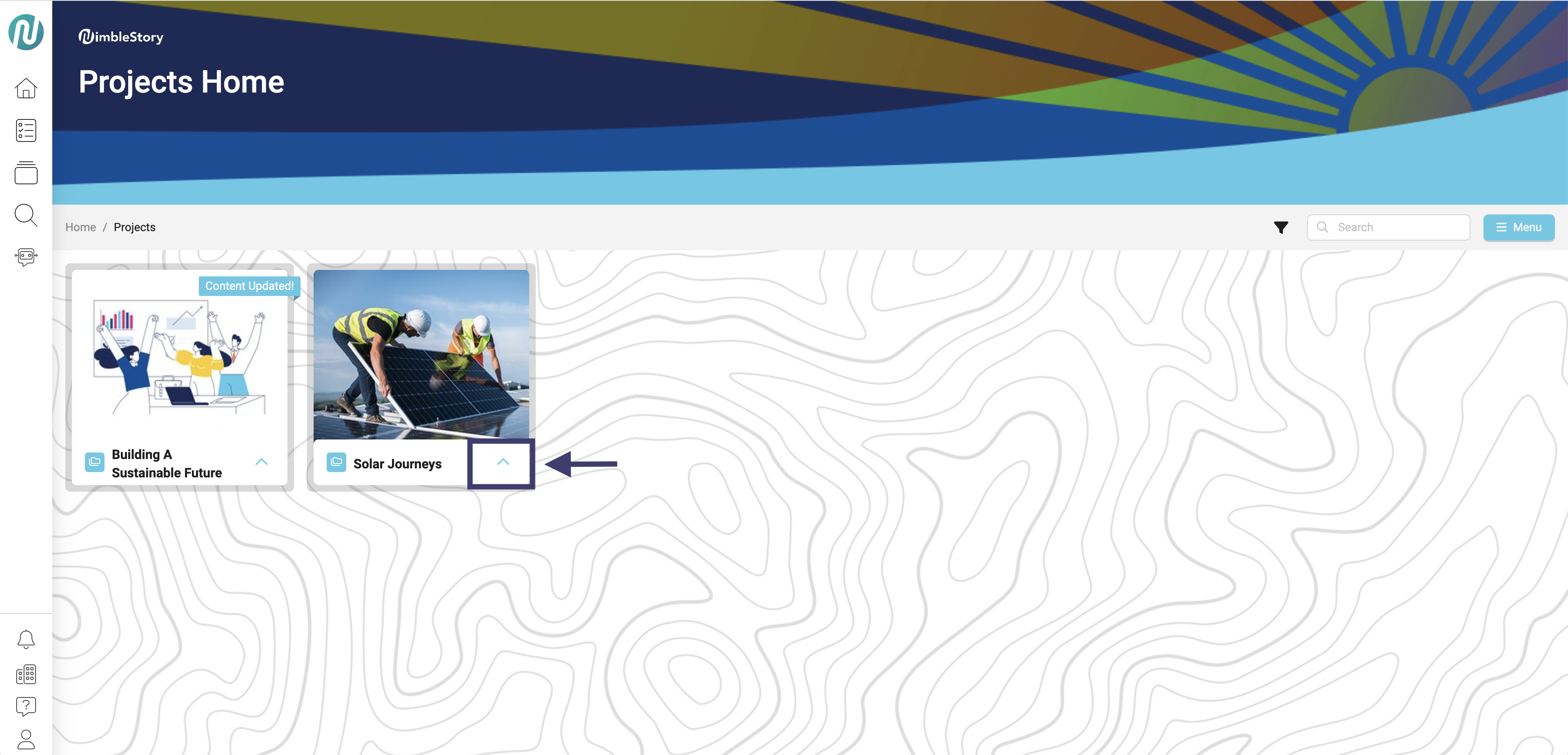 - Navigate to the project or asset that you would like to pin to your home page and select the upwards carrot symbol.