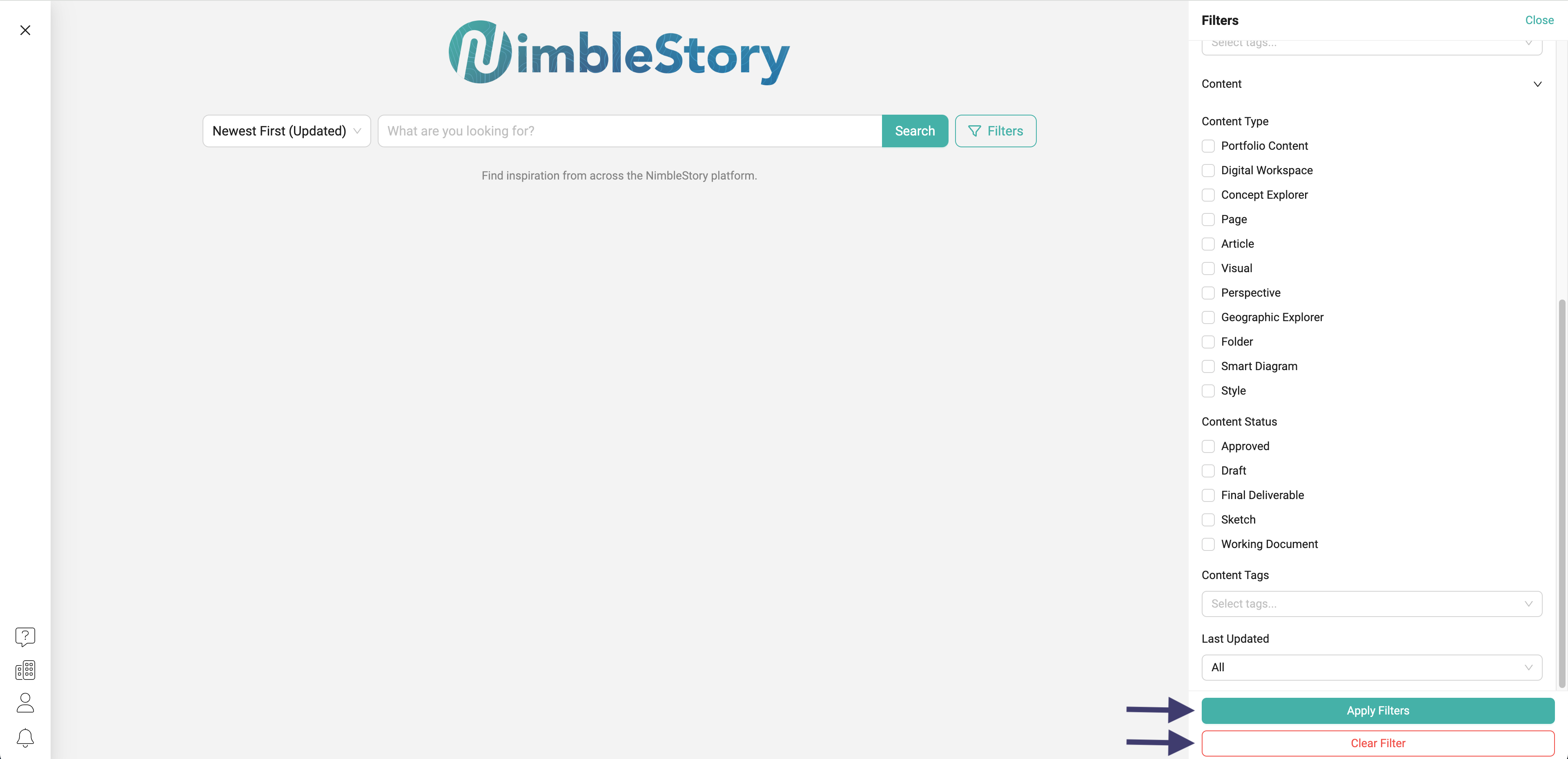 - After selecting your desired filters, click Apply Filters to refine your search and quickly locate the exact content you're looking for!