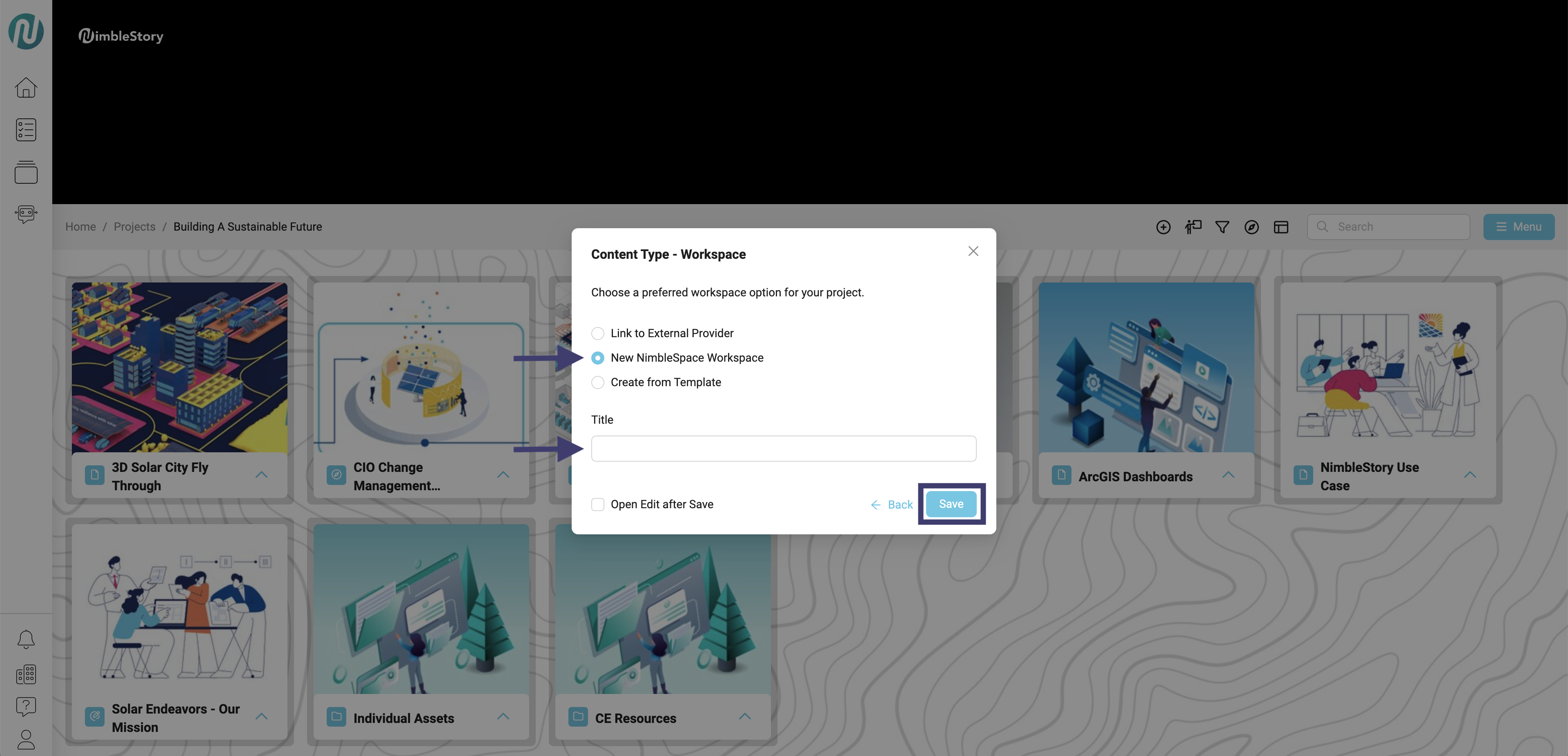 - Start a New NimbleSpace Workspace.