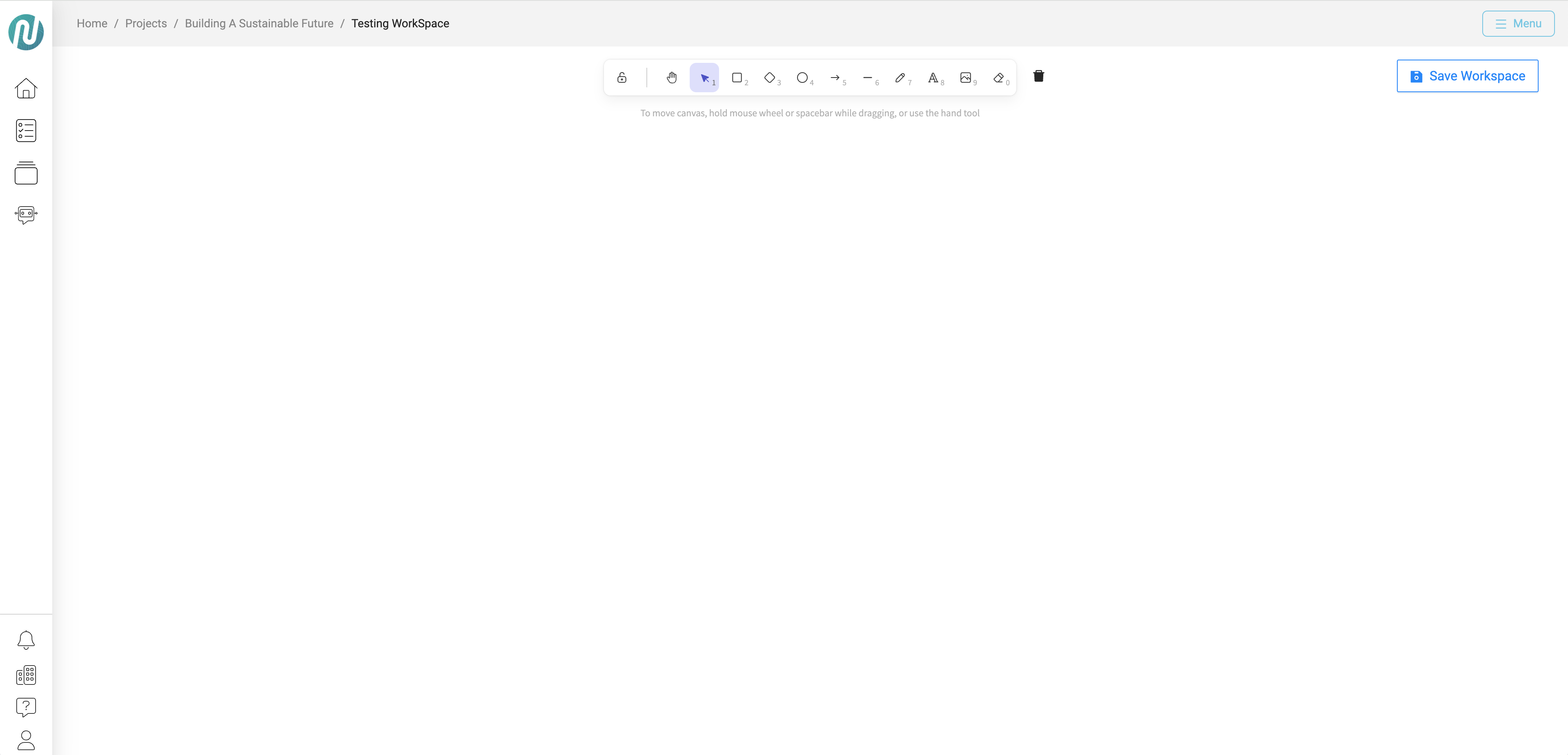- You will be taken to a blank workspace, where you can save your progress and return at any time.
